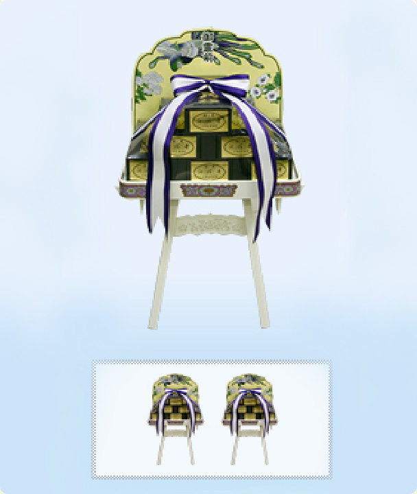 故人の冥福を祈り、仏前に盛りかごをお供えいたします。